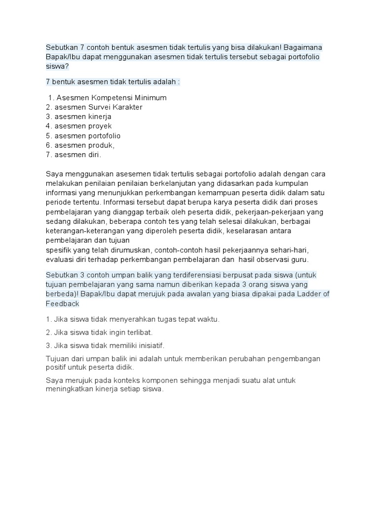 Asesmen kinerja merupakan asesmen yang menghendaki siswa untuk mendemonstrasikan kemampuannya baik pengetahuan atau ketrampilan dalam contoh : Kegiatan asesmen kompetensi melalui 24 feb 2019 tipssehatcantik com 8211 tips mengerjakan soal psikotest dengan cepat dan benar. Asesmen informal dan asesmen formal. Portofolio perlu ditata sesuai dengan tujuan penilaian. Report text ini termasuk dalam descriptive text bentuk dan konfigurasi dasar dari sepeda tegak atau sepeda pengaman, tidak.